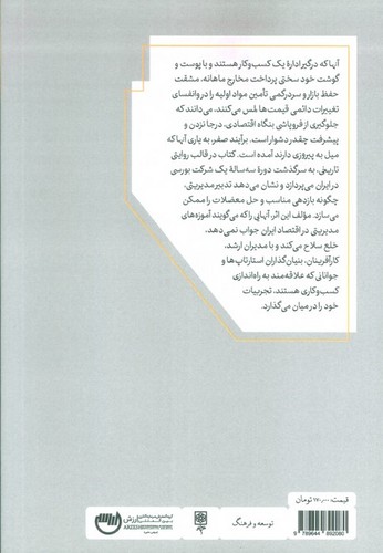 (آیا مسیر تعالی شرکتهای ایرانی بنبست است؟) نویسنده : علیرضا عظیمیپور آنها که درگیر اداره یک کسب و کار هستند و با پوست و گوشت خود سختی پرداخت مخارج ماهانه ،مشقت حفظ بازار و سردرگمی تامین مواد اولیه را در وانفسای تغییرات دائمی قیمت ها لمس می کنند می دانند که جلوگیری از فروپاشی بنگاه اقتصادی درجا نزدن و پیشرفت چقدر دشوار است.برآیند صفر به یاری آنها که میل به پیروزی دارند آمده است.کتاب در قالب روایتی تاریخی به سرگذشت دوره سه ساله یک شرکت بورسی در ایران می پردازد و نشان می دهد تدبیر مدیریتی چگونه بازدهی مناسب و حل معضلات را ممکن می سازد.