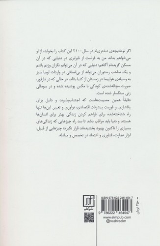 (چگونه خوشبختی تکامل مییابد) نویسنده : مت ریدلی ترجمه : مهدی سیاوش ،محمدرضا مردانیان اگر نوه نتیجه ی دختری ام در سال ۲۱۰۰ این کتاب را بخواند از او می خواهم بداند من به فراست از نابرابری در دنیایی که در آن مسکن گزیده ام آگاهم؛ دنیایی که در آن می توانم نگران وزنم باشم و یک صاحب رستوران می تواند از بی انصافی در واردات لوبیا سبز به وسیله ی هواپیما در زمستان از کنیا ،بنالد در حالی که در دارفور صورت مچاله شده ی کودکی با مگس پوشیده شده و در سومالی زنی سنگسار شده است. دقیقا همین مصیبت هاست که اجتناب پذیرند و دلیل برای پافشاری بر فوریت پیشرفت ،اقتصادی نوآوری و تغییر این ها تنها راه شناخته شده برای فراهم کردن زندگی بهتر برای انسان ها هستند و دنیا باید مراقب باشد تا سد راه چیزهایی که زندگی های بسیاری را تاکنون بهبود بخشیده اند قرار نگیرد؛ چیزهایی از قبیل ابزار ،تجارت فناوری و اعتماد در تخصص و مبادله.
