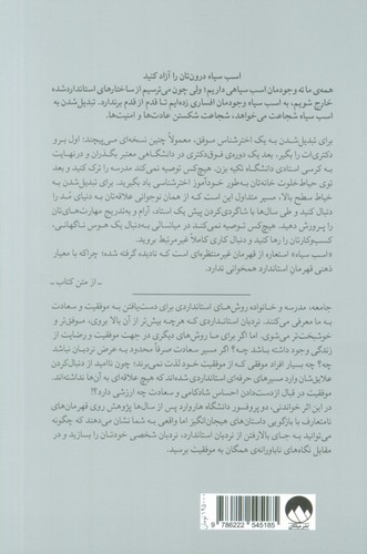 نویسنده : تاد رز واگی اگاس ترجمه : مهسا صباغی انگار از همان آغاز زندگی انسان بر روی کره زمین دستورالعمل هایی برای موفقیت وجود داشته، چون آموزه های مرتبط با «زندگی بهتر» قدمتی اندازه فلسفه دارند و همین هاست که بعدتر صاحب نظران آن را «ادبیات موفقیت» نام داده اند. هرجا سخن از اسب سیاه می شود منظور قهرمان و برنده ای است که هیچ یک از شرایط برد را نداشته، طبق معیارهای استاندارد پیش نرفته، ولی در روندی شگفت راه خودش را تا جایگاه اول بریده و رفته و همه را مبهوت گذاشته است. باور ما این است که فردیت و تفاوتهای فردی بسیار حائز اهمیت است و فرمول استاندارد و واحدی برای رسیدن به کامیابی و موفقیت وجود ندارد.