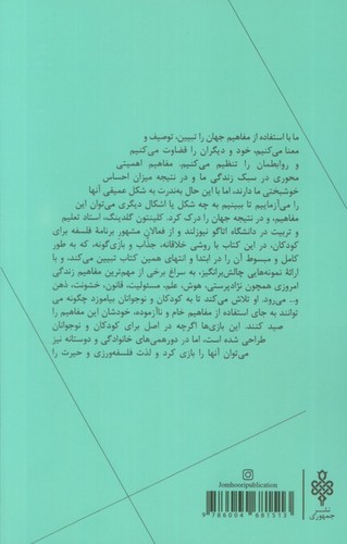 نویسنده : کلینتون گلدینگ ترجمه : روحالله کریمی ،مریم محمودزاده این اثر یک منبع کلاس درس ارزشمند است که برای کمک به معلمان طراحی شده است تا از طریق کشف مفاهیمی مانند خشونت، ذهن، فرهنگ، دانش و عدالت، کلاس خود را به یک جامعه تحقیق تبدیل کنند. کتاب شامل ایدههای بحث و گفتگو و تمرینهای مناسب برای کل کلاس، فعالیتهای گروهی و فردی با استفاده از طیف گستردهای از سبکهای یادگیری است. دستورالعملهای واضح، مثالها و نمونه سوالات مقدمهای گامبهگام برای تحلیل مفهومی در کلاس درس فراهم میکند. بازیهای مفهومی برای استفاده با دانش آموزان 12 سال و بالاتر ایدهآل است. این منبع مخصوصاً برای استفاده در زبان انگلیسی، آموزش اجتماعی، علوم، آموزش دینی و هر موضوعی است که مهارتهای تفکر را آموزش میدهد و برای آموزش ارزش قائل است.
