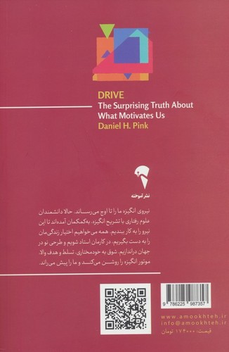 نویسنده : دنیل اچ پینک ترجمه : هدا پریزاد دنیل اچ. پینک در کتاب انگیزه: نیروهایی که ما را پیش میراند، شیوههای متداول انگیزهبخشی را رد میکند و رویکردی علمی پیشنهاد میدهد که با کمک آن میتوان به شکلی مؤثر در دیگران شوق ایجاد کرد. این کتاب که در صدر لیست پرفروشترین آثار نیویورک تایمز بوده، به سه مؤلفهی روانشناختی در این زمینه اشاره میکند و به مدیران میآموزد که چطور با زیرمجموعهشان رفتار کنند تا بتوانند در آنها انگیزه ایجاد نمایند و بهرهوریشان را بالاتر ببرند.