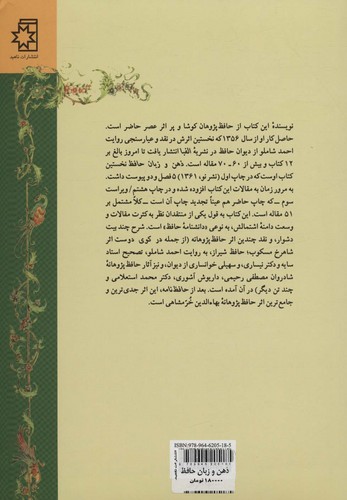 این کتاب حاصل کار نویسنده از سال ۱۳۵۶ که نخستین اثرش در نقد و عیارسنجی روایت احمد شاملو از دیوان حافظ در نشریهء الفبا انتشار یافت تا امروز بالغ بر ۱۲ کتاب و بیش از ۶۰-۷۰ مقاله است. ذهن و زبان حافظ نخستین کتاب اوست که در چاپ اول (نشرنو، ۱۳۶۱) ۵ فصل و دو پیوست داشت. به مروز زمان به مقالات این کتاب افزوده شده و در چاپ هشتم / ویراست سوم که چاپ حاضر هم عیناً تجدید چاپ آن است کلاً مشتمل بر ۵۱ مقاله است. این کتاب به قول یکی از منتقدان نظر به کثرت مقالات و وسعت دامنهء اشتمالش، به نوعی «دانشنامهء حافظ» است. شرح چند بیت دشوار، و نقد چندین اثر حافظ پژوهانه (از جمله در کوی دوست اثر شاهرخ مسکوب؛ حافظ شیراز، به روایت احمد شاملو، تصحیح استاد سایه و دکتر نیساری، و سهیلی خوانساری از دیوان، و نیز آثار حافظ پژوهانهء شادروان مصطفی رحیمی، داریوش آشوری، دکتر محمد استعلامی و چند تن دیگر) در آن آمده است. بعد از حافظ نامه، این اثر جدیترین و جامعترین اثر حافظ پژوهانهء بهاءالدین خرمشاهی است.